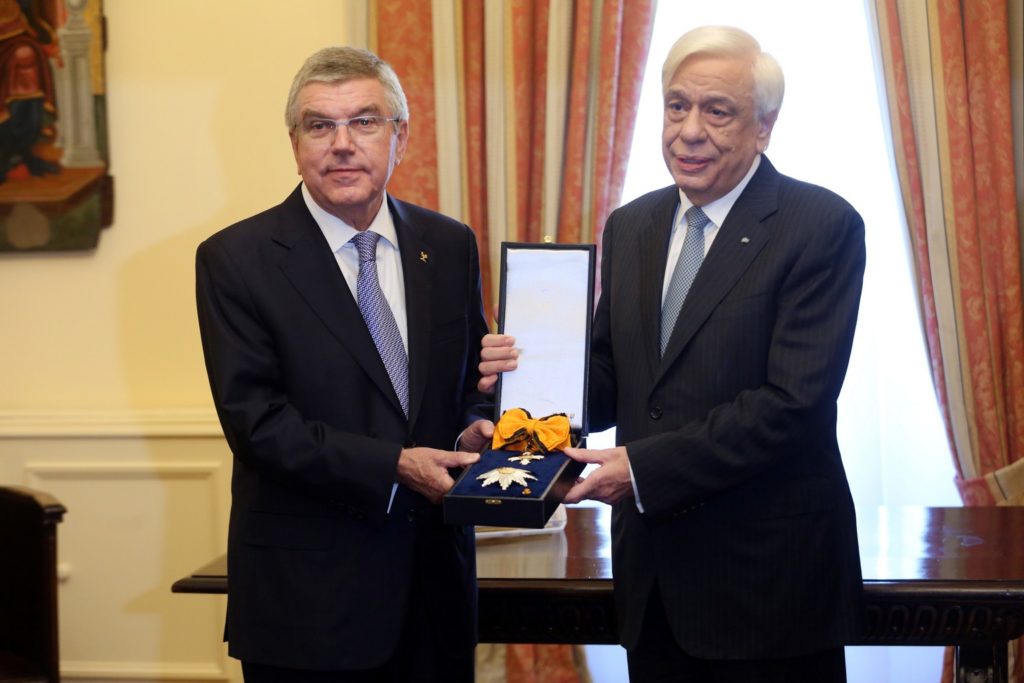 Από την παρασημοφόρηση του Προέδρου της Διεθνούς Ολυμπιακής Επιτροπής κ. Thomas Bach με το Παράσημο του Μεγαλόσταυρου του Τάγματος του Φοίνικος από τον Πρόεδρο της Δημοκρατίας κ. Προκόπιο Παυλόπουλου στο Προεδρικό Μέγαρο