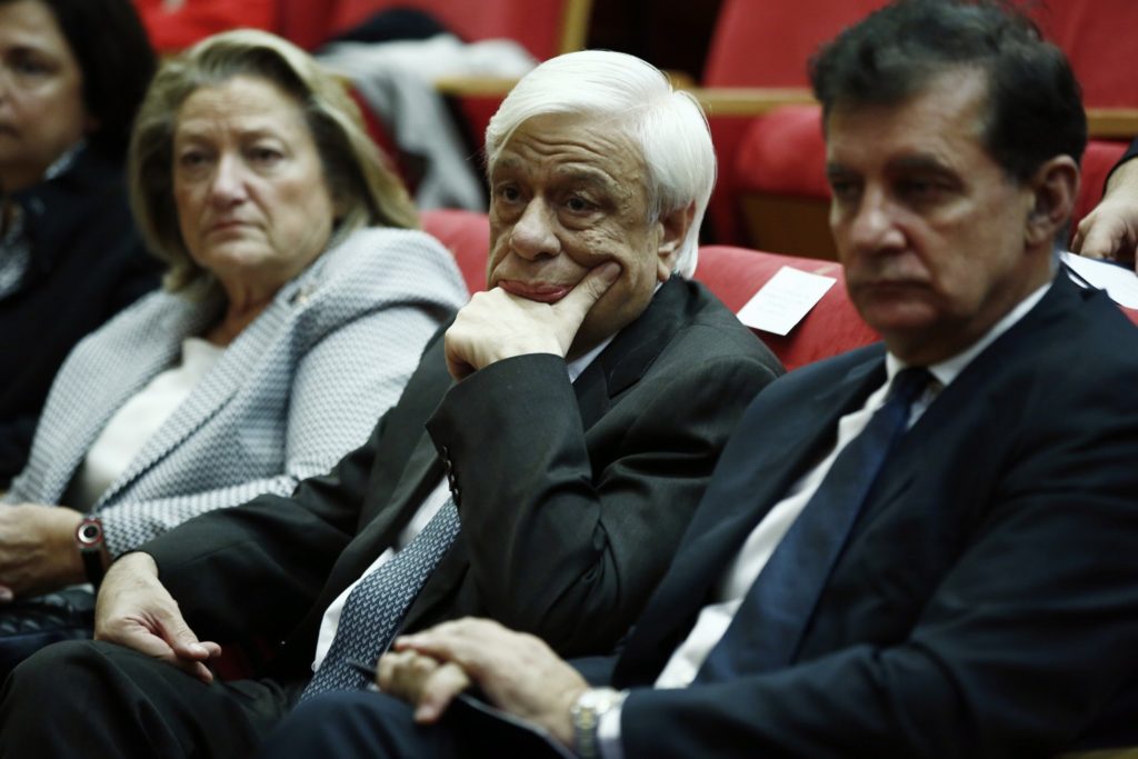 Ï ðñüåäñïò ôçò Äçìïêñáôßáò Ðñïêüðçò Ðáõëüðïõëïò (Ê) óõíïäåõüìåíïò áðü ôçí óýæõãü ôïõ Âëáóßá Ðáõëïðïýëïõ (Á) ðáñåõñßóêåôáé óôçí åêäÞëùóç «Ï ðïéçôÞò ÊùóôÞò ÐáëáìÜò óÞìåñá», óôï ÐáíåðéóôÞìéï Áèçíþí, ÁèÞíá ÔåôÜñôç 20 Íïåìâñßïõ 2019. ÁÐÅ-ÌÐÅ/ÁÐÅ-ÌÐÅ/ÃÉÁÍÍÇÓ ÊÏËÅÓÉÄÇÓ