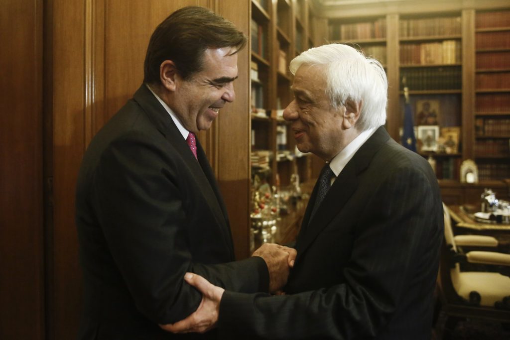 Ο Πρόεδρος της Δημοκρατίας Προκόπης Παυλόπουλος (Δ) ανταλλάσσει χειραψία με τον νέο επίτροπο της Ελλάδας στην Ε.Ε, Μαργαρίτη Σχοινά (Α), κατά τη διάρκεια της συνάντησής τους, στο Προεδρικό Μέγαρο, Αθήνα Τετάρτη 16 Οκτωβρίου 2019. ΑΠΕ-ΜΠΕ/ΑΠΕ-ΜΠΕ/ΓΙΑΝΝΗΣ ΚΟΛΕΣΙΔΗΣ