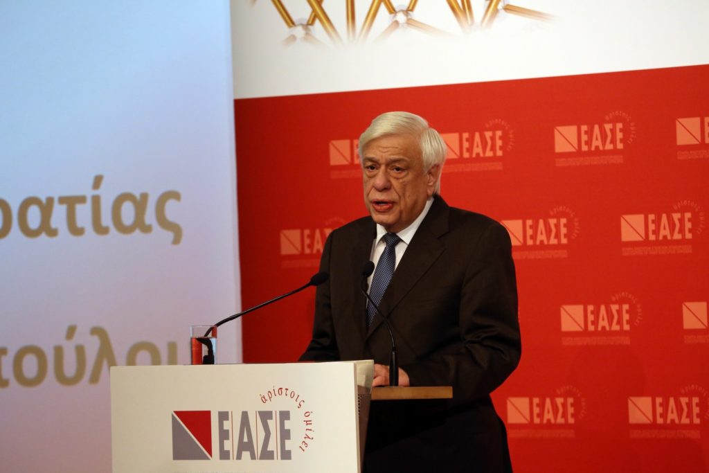 Ο Πρόεδρος της Δημοκρατίας Προκόπιος Παυλόπουλος, μιλά στο ξεκίνημα των εργασιών των εργασιών της ειδικής ημερίδας διαλόγου μεταξύ στελεχών της Δημόσιας Διοίκησης και του Ιδιωτικού τομέα που διοργανώνει η Εταιρεία Ανωτάτων Στελεχών Επιχειρήσεων με θέμα: «Γέφυρες Συνεργασίας, Τετάρτη 22 Ιανουαρίου 2020. ΑΠΕ-ΜΠΕ/ΑΠΕ-ΜΠΕ/Αλέξανδρος Μπελτές