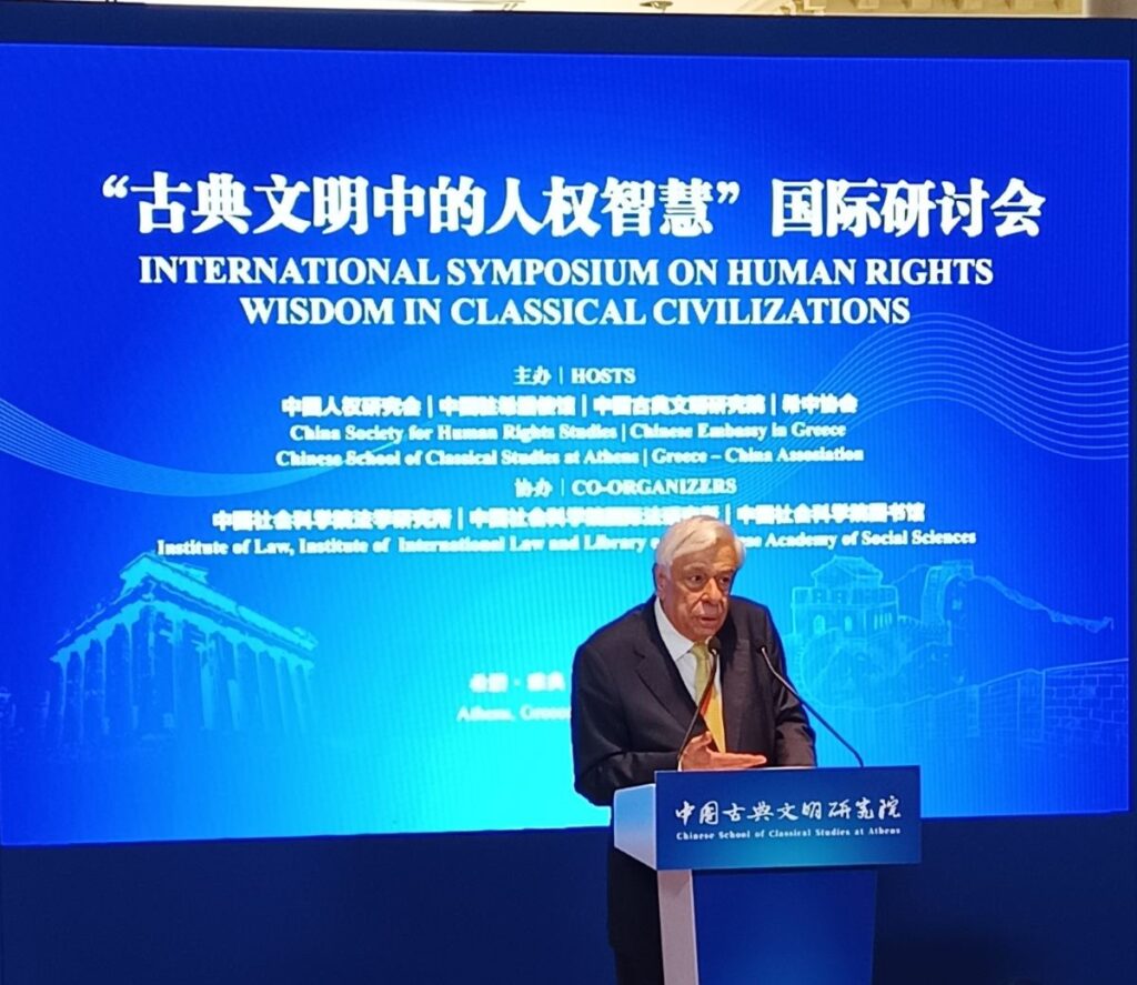 Ο πρώην Πρόεδρος της Δημοκρατίας και Ακαδημαϊκός κ. Προκόπιος Παυλόπουλος παρέστη σήμερα και απηύθυνε χαιρετισμό στα εγκαίνια της Κινεζικής Σχολής Κλασικών Σπουδών στην Αθήνα, η οποία έχει την έδρα της στο Ελληνικό. Στην συνέχεια ο κ. Παυλόπουλος μίλησε, στο Διεθνές Συνέδριο με θέμα την «Φιλοσοφική σκέψη για τα Δικαιώματα του Ανθρώπου στο πλαίσιο των Κλασικών Πολιτισμών», με αντικείμενο την περί Ελευθερίας θεωρία του Επικτήτου εντός του πεδίου της Στωικής Φιλοσοφίας. Στην ομιλία του επισήμανε ιδίως το πόσο η σκέψη αυτή είναι, τουλάχιστον εν πολλοίς, κοινή στους κατ’ τ’ ανωτέρω Κλασικούς Πολιτισμούς. Ειδικότερα, ο κ. Παυλόπουλος τόνισε ότι η κατά τον Επίκτητο Ελευθερία συμπυκνώνεται στην δύναμη του Ανθρώπου να αναχαιτίζει την, καταστροφική πολλές φορές για τον βίο του, ροπή διαρκούς επιδίωξης απόκτησης αγαθών. Κατ’ εξοχήν δε αγαθών τα οποία δεν είναι χρήσιμο ή και δεν είναι εφικτό να αποκτήσει. Περαιτέρω ο κ. Παυλόπουλος ανέδειξε ότι η προαναφερόμενη θεωρία του Επικτήτου περί Ελευθερίας είναι πάντα επίκαιρη και στην σύγχρονη Αντιπροσωπευτική Δημοκρατία. Κυρίως καθ’ ο μέτρο συμβάλλει στην κατανόηση του ότι εντός αυτής η άσκηση του κάθε είδους δικαιώματος δεν είναι ανεξέλεγκτη, αλλά έχει όρια που καθορίζονται προεχόντως από το Σύνταγμα και την εκτελεστική του νομοθεσία. Όρια, τα οποία ο Άνθρωπος πρέπει να σέβεται συνειδητώς και όχι υπό καθεστώς καταναγκασμού.