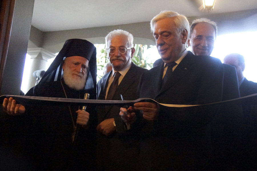 Ο Πρόεδρος της Δημοκρατίας Προκόπης Παυλόπουλος (Δ) κόβει την κορδέλα των εγκαινίων του Μουσείου «ΟΙΚΙΑ ΕΛΕΥΘΕΡΙΟΥ ΒΕΝΙΖΕΛΟΥ», στα Χανιά, την Κυριακή 01 Νοεμβρίου 2015.Ο Πρόεδρος της Δημοκρατίας Προκόπης Παυλόπουλος, εγκαινίασε την ανακαινισμένη οικία του Ελευθερίου Βενιζέλου στη Χαλέπα Χανίων η οποία έχει μετατραπεί στο Μουσείο «ΟΙΚΙΑ ΕΛΕΥΘΕΡΙΟΥ ΒΕΝΙΖΕΛΟΥ», στα Χανιά. ΑΠΕ-ΜΠΕ/ΑΠΕ-ΜΠΕ/ΠΑΤΤΑΚΟΣ ΠΕΤΡΟΣ