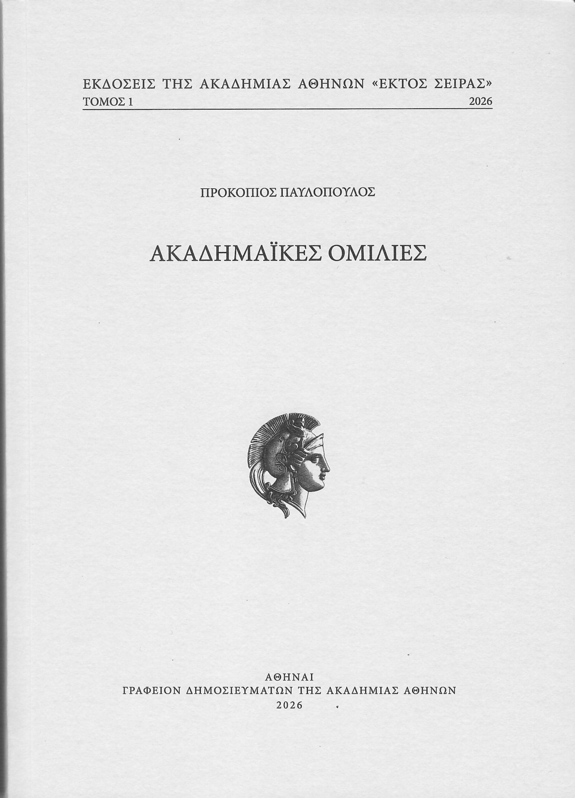 38. Ακαδημαϊκές Ομιλίες, Εκδόσεις της Ακαδημίας Αθηνών “Εκτός Σειράς”, τ. 1, Αθήνα 2026