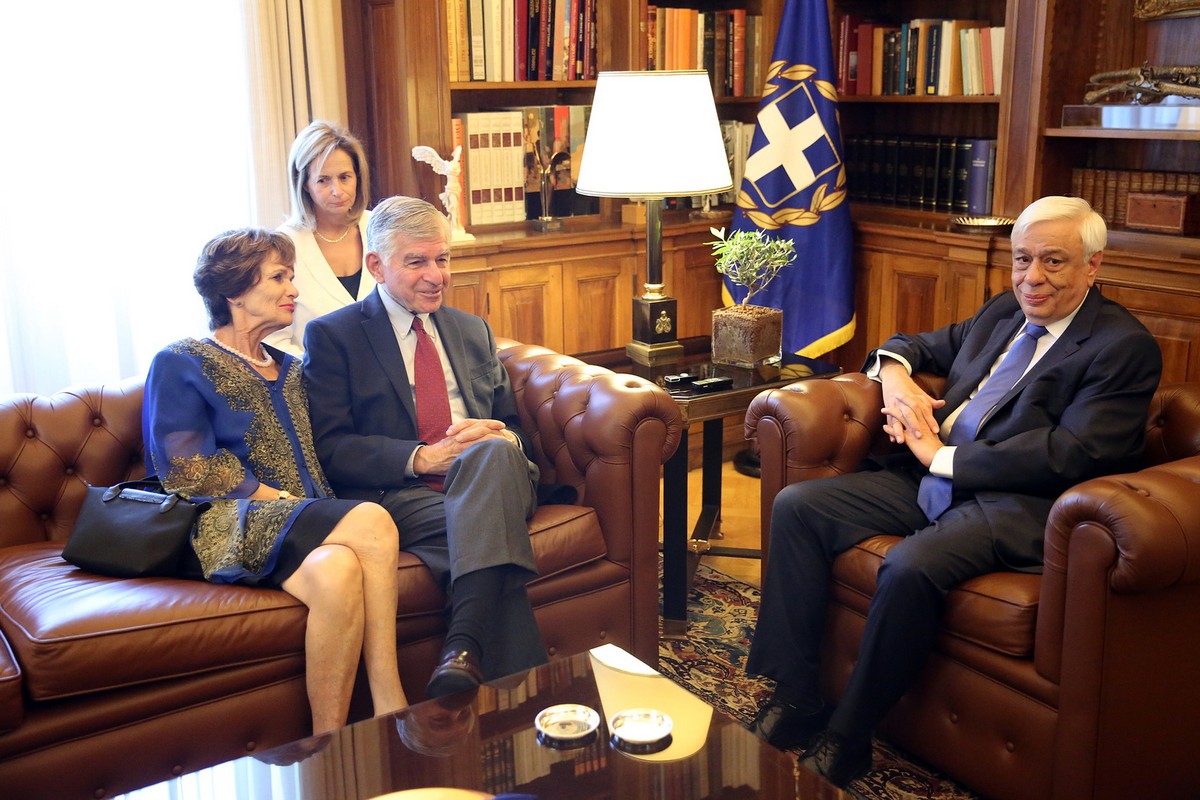 ΠΡΟΕΔΡΟΣ: Κύριε Πρόεδρε - σας αποκαλώ μ’αυτόν τον τίτλο γιατί θα σας άξιζε πραγματικά να τον είχατε κατακτήσει - σας υποδέχομαι στην Προεδρία της Δημοκρατίας ως κορυφαίο πολιτικό των Ηνωμένων Πολιτειών, αλλά και ως κορυφαίο Έλληνα της Διασποράς.